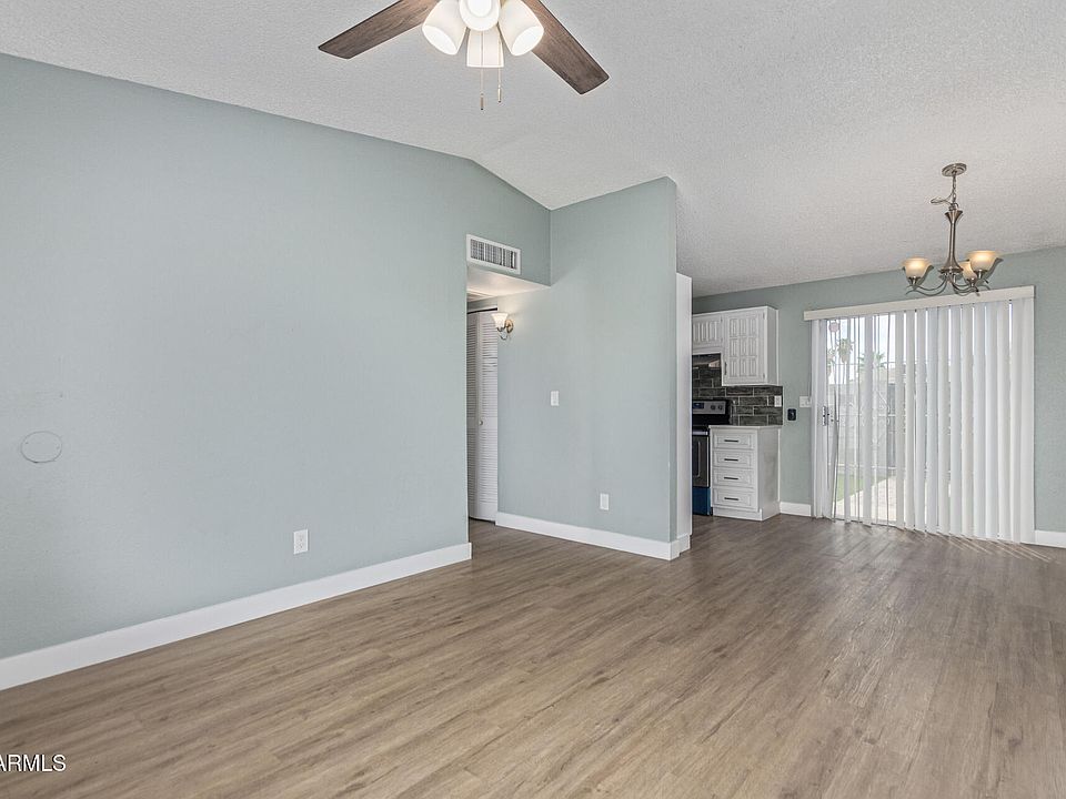 Move-in ready! This charming townhouse features luxury vinyl flooring throughout, a modern kitchen with quartz countertops and a sleek tiled backsplash, plus a refreshed bathroom featuring a tiled shower and matching quartz vanity. The private yard is complete with fluffy green turf and a concrete paver walkway. Situated just minutes from shopping, dining, schools, and major freeways, this property provides easy access to everything the West Valley has to offer.