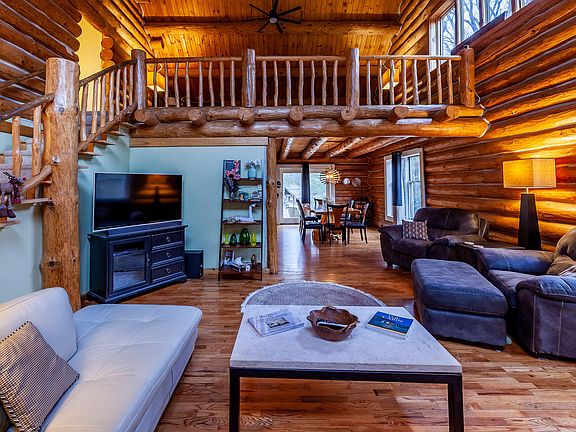 Welcome to 3646 W Riley Thompson Road. This 4 bedroom 2.5 bath log home was built in 1994 by Maple Island Log Homes and has seen many upgrades since. (see addendum) Situated on 6.67 acres in Fruitland Township, this beautiful home is amazing. Set back off the road in a very private setting you will find peace and quiet from the hustle and bustle of life. On the outside you will notice the home recently had a full strip and refinish per manufacturers specs. It looks great. Inside you are greeted with an amazing living room which flows into the dinning room and kitchen with a slider out to the back deck. Many custom features in the kitchen including a gorgeous live edge center island that makes a wonderful gathering space. All appliances are included and some of the furniture could be for the right price. Outdoors there is a detached garage with a 12 x 24 shop area on the back. Past that is the trailhead for the wondering trails around the property. It is 200 yards from the