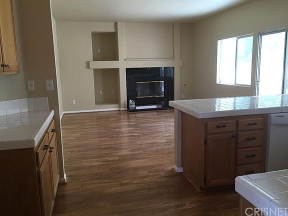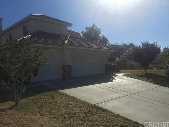this home has it all! Brand new laminate wood flooring downstairs, including living room, kitchen, family room and downstairs office ( was 4th bedroom). Brand new washer and dryer, gas stove, dishwasher and microwave. The family room has a great fireplace with mantle. Lots of windows for great lighting. Covered patio off family room and new landscaping in back yard. The stairs are new laminate as well with tile entry. Upstairs brand new tweedy carpeting on plush pad. Master has dual sinks, separate toilet room, his and her's walk in closets and shower-tub. Master bedroom is a good size for large furniture if needed.There are two additional bedrooms and a full bath off hallway. This home is situated on a hill lot with views of the east valley. It is actually in south palmdale and only a few minutes from Acton so the commute is a lot less time than being on the west side of town. Landscaping is being refurbished and gardener is provided. There is a 3 car garage for lots of storage room with auto sprinklers for entire property.