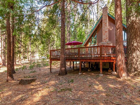 Adorable updated chalet on a perfect level lot. Enjoy the forest view from the over-sized newer deck. Vaulted wood ceilings in the great room with a cozy gas fireplace insert. Forced air heat for easy comfort. Updated kitchen and appliances. This cabin is 100% turn key and ready to go! Home is being sold completely furnished so it couldn't be easier to start enjoying you summer in the mountains! Join the Big Trees Village Rec Center for pool and park access.