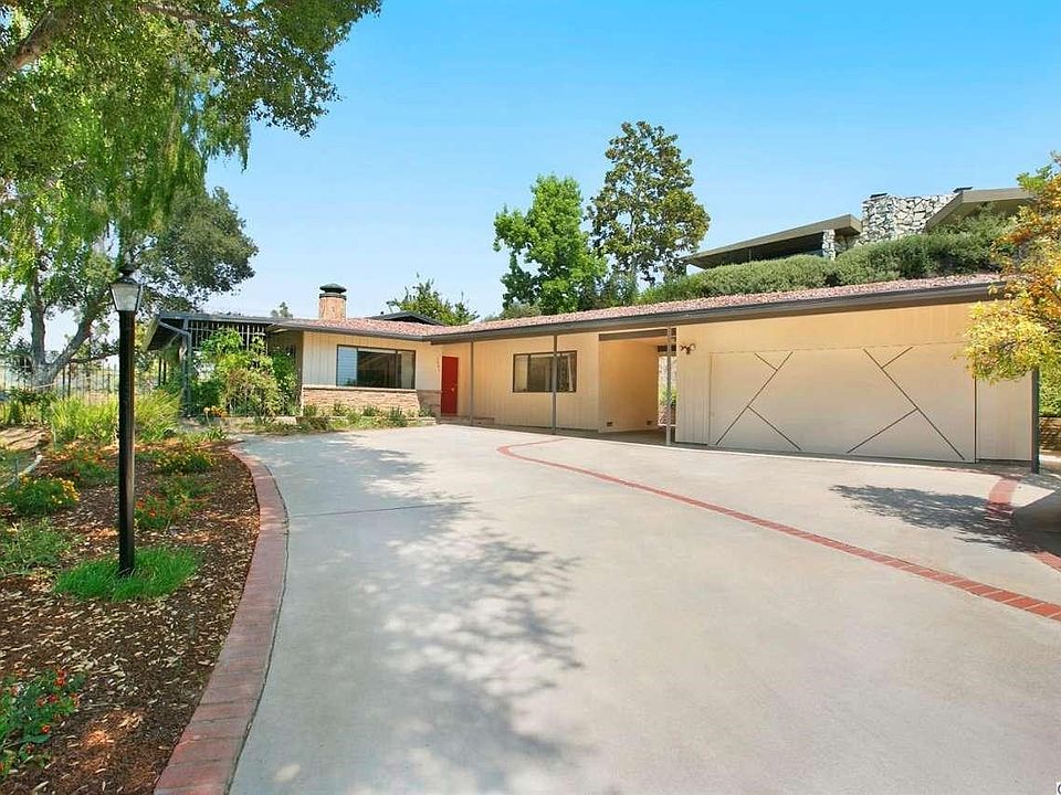 If you love to catch a close glimpse of a deer and love privacy, then this home is for you! Nestled in the Coveted Foothills of Glendale's Whiting Woods amid oak trees, hiking trails, seasonal streams and where deer roam free, you will find a Mid Century Gem. A long driveway invites you to experience a sanctuary set on a hilltop above the street with views where architecture harmonizes with nature's mature trees. The 3 bedroom, 2 bath classic home boasts an open floor plan with stunning wood vaulted ceilings, neutral colors, wood floors throughout and a wall of windows which capture the mountain views and tranquil setting of the yard. The generous private beamed patio expands your outdoor living space which opens to an in ground spa with waterfall in a lush setting to watch the sun set. An oversized two sided fireplace separates the living and formal dining rooms. The bathroom was remodeled with an eye on custom features. The sunlit kitchen has wood cabinetry, a garden window and a breakfast nook with large windows from which to watch the squirrels play and for the family to gather. Search for the secret closet in the third bedroom with a sliding door opening to a peaceful rear yard. With award winning schools, this home is a true respite from city life!