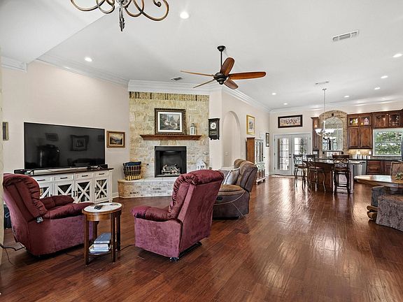 Stone fireplaceStone-and-brick exteriorOpen floor planRich hardwood floorsGranite countertopsPolyaspartic urethane flooringOversized walk-in shower