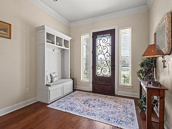 Welcome to this beautifully designed, north-facing custom home that has the perfect blend of style, comfort, and functionality. Nestled on a spacious .283-acre lot, this home offers timeless curb appeal with its stone-and-brick exterior, covered front porch, and welcoming entry.