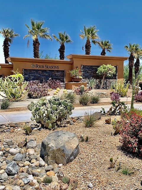 This detached home is ideal for those who desire a "Single Story 2748 square foot home". WELCOME to 3647 SAVANNA WAY, located in a gated community at Four Seasons at Palm Springs. This Canyon Collection Plan 2 home boasts an open floor plan with 2 bedrooms, a den, 2 full bathrooms, a large kitchen with a walk-in pantry, a GREAT Room, indoor laundry room, Frontier high-speed fiber optic internet, and an attached two car garage with an epoxy surface.The Primary bedroom is adjacent to the Primary bath with dual vanities, oval tub with separate shower and a spacious walk-in closet. The Den provides a room to use as a media room, office or can be converted into a 3rd bedroom. The interior has been freshly painted, new carpet in bedrooms and Great room, and CORTec luxury vinyl plank flooring in entry foyer, kitchen, laundry room and bathrooms. This 55+ planned community designed as a resort-style community offers a fully staffed Lodge, a variety of amenities which includes a fitness center, library, tennis courts, bocce ball, pickle ball, ballroom, and inviting sparkling pools and more!! You can also gather with friends and neighbors at the outdoor BBQ area. The monthly schedule of posted activities will keep you as active as you wish to be. And, you can also explore the inviting restaurants and shopping of downtown Palm Springs and if needed, don't forget that the Palm Springs International Airport is nearby.
