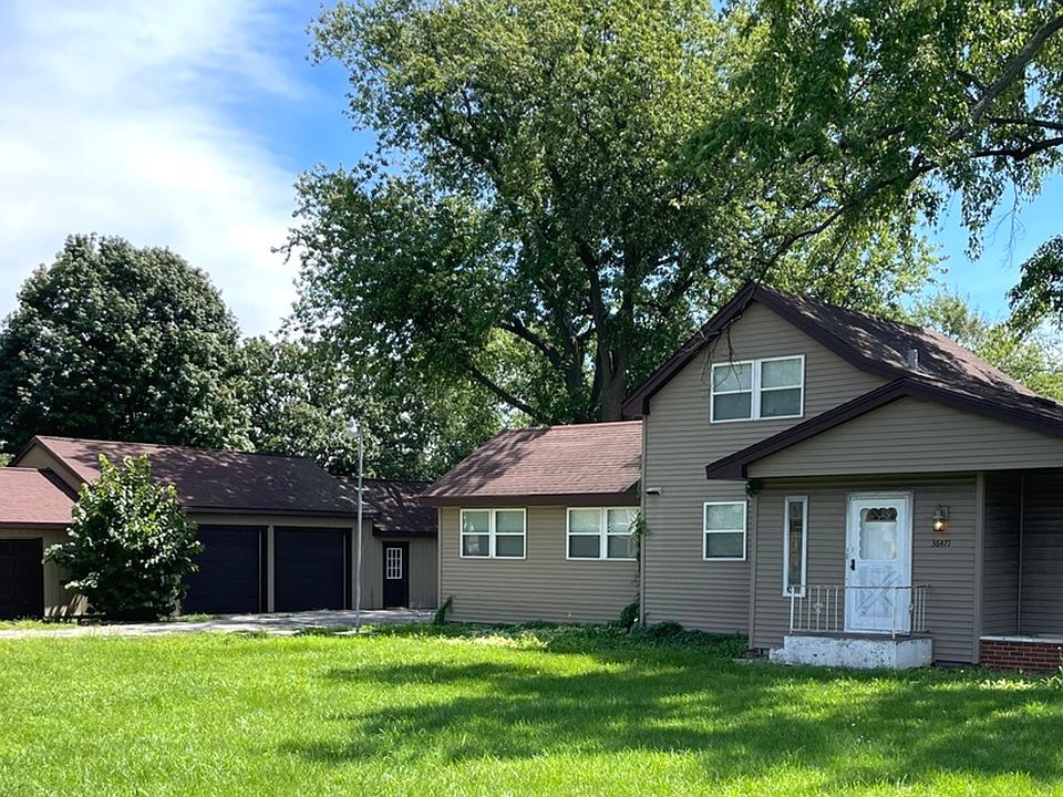 One of a kind property on .76 acres in the heart of Gurnee. Huge 3 car garage perfect for home business or contractor. Located just minutes from Gurnee attractions such as Great America, Great Wolf Lodge and Gurnee Mills. Living room highlighted by a cozy floor to ceiling brick fireplace multiple windows, allowing plenty of natural light to flow throughout. Kitchen highlights gorgeous white cabinetry, matching appliances and eating area with exterior access. Master bedroom with walk-in closet, second bedroom, one full bathroom and family room with sliding glass doors to the deck, complete the main level. Upper level provides a bedroom and half bathroom, ideal for privacy. FRESHLY PAINTED. BRAND NEW KITCHEN FLOORING. Approximately 500 SF basement perfect for extra storage.
