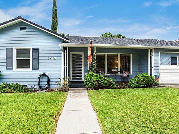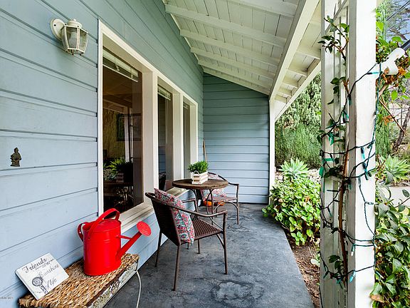 Curb appeal abounds! This darling 2 BR, 1 BA plus Bonus Den and a nice back yard makes for a very comfortable home. Lovely grassy front yard and covered front porch are just two of the features that make this home so special. Shiny wood floors and a spectacular picture window make the LR so comfortable and relaxing. A bright, open, updated eat-in kitchen with new countertops and flooring make cooking and visiting fun. The master has wood floors, ample closet space and natural light. Wood floors in hallway lead to updated tile full bathroom. 2nd Bedroom is spacious with wood floors, nice closet space, ceiling fan and window. The den has lots of room (Approx 400 sq..ft. may or may not be with benefit of permit) and a fireplace with many possible uses. It has access to the versatile back yard with grass, eating area, play area and privacy. A one car attached garage, quiet street and mounain views make this home even more appealing. Blue Ribbon Schools and so much more.