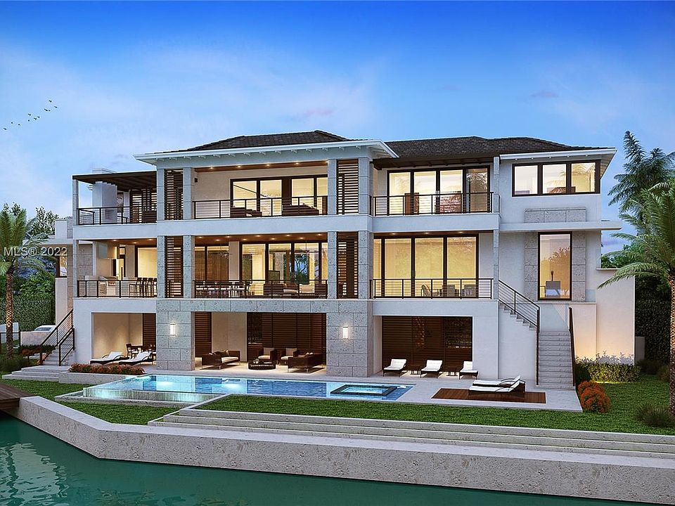New custom tropical modern 2-story waterfront residence located in the prestigious Entrada Estates, a 24/7 guard-gated exclusive neighborhood. Located on the boat basin with 160 ft of waterfrontage with direct access to Biscayne Bay. Spanning over 9,400 sf with 6 beds, 6 baths plus 2 half baths. Expanses of floor-to-ceiling windows provide abundant natural light throughout. Master Suite with spa inspired design includes oversized shower and separate soaking tub. Impressive entertainment room. Exterior features: summer kitchen, multiple covered terraces and pool. Luxurious finishes and 13 ft high ceilings. Expansive bonus space on ground level. Amenities include community Tennis court and park. Short walk to Coconut Grove and A+ rated schools. Projected completion 2nd quarter 2023.