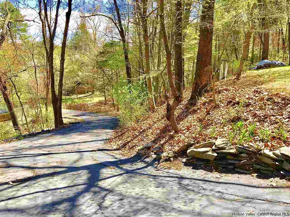 PRIVATE STONE RIDGE MID CENTURY. WALK TO TOWN. How rare and wonderful to find privacy in a fantastic Stone Ridge location and yet seconds to the Hamlet with Shops, Restaurants, Gym, Library and the ability to stroll thru picturesque Stone Ridge. Charming, Cozy and well designed for entertaining. Living Room with hardwood floors, large picture window (to enjoy the view of your private property) and fireplace (currently with woodstove insert) is bright and inviting. One bedroom and bath on main floor with a few short steps to a den and two more bedrooms. Lovely property with mature trees and stone walls. Great opportunity!!