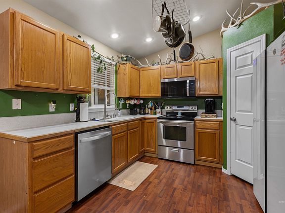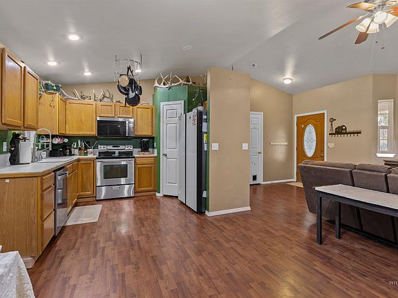 Charming Meridian home with endless potential! Nestled in a quiet, established neighborhood, this property sits on an oversized lot with room for chickens, a garden, and more—perfect for those seeking a little extra space and freedom. The open kitchen and living area offer great natural light and vaulted ceilings, giving the home a comfortable, airy feel. Step outside to a large covered patio overlooking the backyard, ideal for entertaining or relaxing year-round. Includes storage sheds, mature trees, and plenty of opportunity to make it your own. Conveniently located near schools, shopping, and freeway access.
