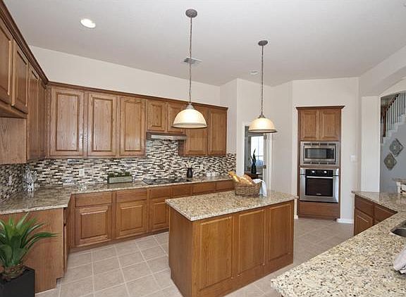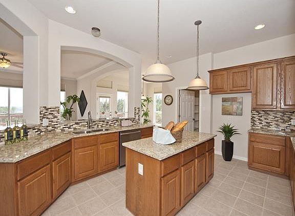 Enjoy panoramic views of the countryside in this dazzling hill top home. This move-in ready home received a complete make-over in May 2014. Upgrades: Gorgeous granite kitchen countertops & modern tile backsplash accenting new Bosch appliances; Rectangular tiled floor & frameless shower with elegant framed mirrors in master bath; Brushed nickel faucets, door hardware, lighting & ceiling fans; Multi-color frieze carpet. Neighborhood taxes are .875% cheaper than Belterra or Rim Rock for similar amenities.