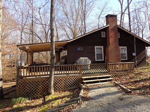 Wonderful waterfront cabin features knotty pine, sun room for additional living space and a wrap around covered deck over looking the water. Plenty of space to store your boats with a very gentle slope down to the water. Everything you need is here to start enjoying this lake getaway! Sellers will leave most furnishings with the right offer! PRICE REDUCED!