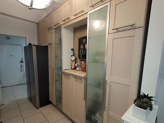 Floor-to-ceiling wood cabinetsGenerous storage spaceLarge built in closetStainless steel appliancesOversized studioCeramic tile flooringFull tiled walls