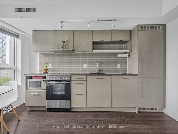 Sleek and smartly designed studio condo offering 405 sq ft of functional living space plus a private balcony with an unobstructed east-facing view. This open-concept unit features modern finishes throughout, including wide-plank laminate flooring and built-in stainless steel appliances. Perfectly located just steps from Toronto Metropolitan University, U of T, TTC, Eaton Centre, Dundas Square, major hospitals, and the Financial District. Groceries, shopping, dining, and entertainment are all at your doorstep - plus a perfect Walk Score to prove it. Enjoy an impressive array of building amenities: 24-hour concierge, well-equipped gym, yoga studio, party room, rooftop terrace with BBQs, theatre room, and more. Whether you're a student, professional, or investor, this is downtown living at its most convenient and stylish.