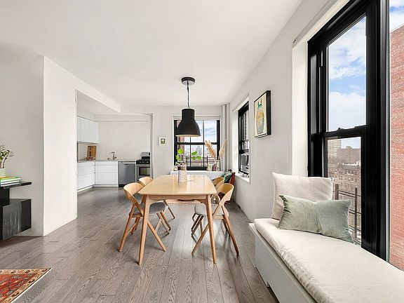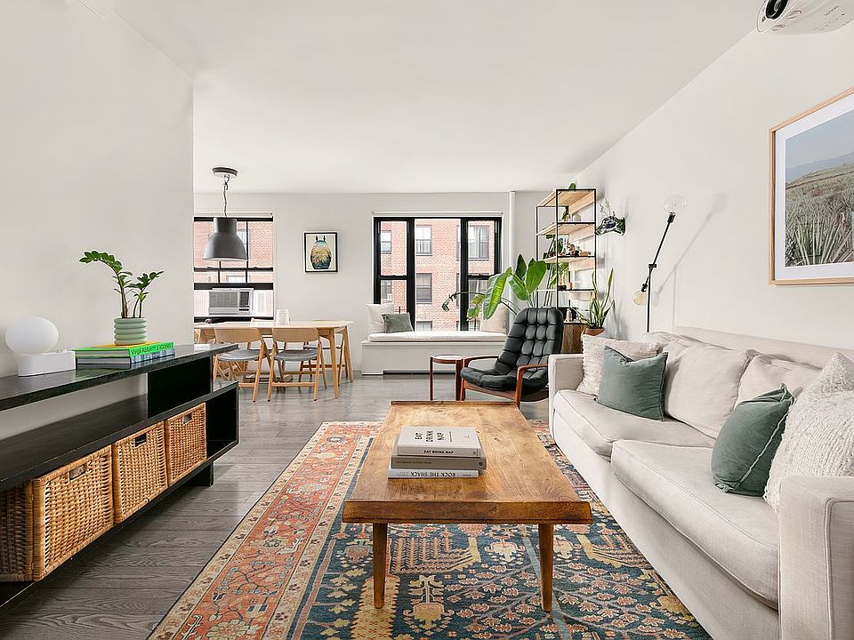 This apartment features recently upgraded oversized black-trim windows, dimmable lighting, and The Radiator Labs Cozy—a smart, internet-connected, thermostatic cover for radiators. Cozys can save up to 45% on heating costs and allow control over heating temperatures, a revolutionary advancement for steam-heated buildings.