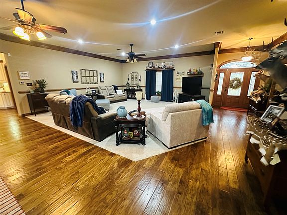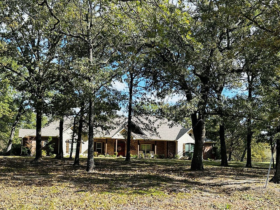 Nestled on 2.28 serene, wooded acres, this stunning 3-bedroom, 2.5 bath custom home offers 3,858 sq. ft. of luxurious living space and an impressive 2000 sq. ft. shop with 3 bays, each with its own garage opener. Enjoy the perfect blend of country living and modern convenience, just minutes from town. Inside you will find exceptional craftmanship and attention to detail throughout. The chef's kitchen is a showstopper, featuring two Fisher & Paykel dishwasher drawers, double ovens a main sink plus a prep sink, and a beautiful custom picture window. Stained white oak trim accents the room, creating an inviting atmosphere. The living room boasts 10 ft. ceilings, a custom gas-log fireplace, and a surround sound system. Additional highlights include an oversized double garage, sprinkler and security systems, impact resistant roof (2024), new gutters and exterior paint (2024), two HVAC units, 2 gas hot water heaters, and pipe and cable fencing around the shop and part of the perimeter. This property has been meticulously maintained, has custom features galore, and offers the peace of the country....a true must-see!