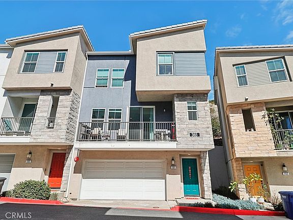 Newer built tri-level 2 bedroom 2.5 bath townhouse style condo in the ViewPointe Community of San Marcos. This gorgeous corner unit with only 1 shared wall boasts all the bells and whistles of a modern build, including 9 ft ceilings, upgraded quartz countertops, ceramic tile flooring, SS appliances . The home is light, bright and move in ready. The second level boast an open concept lay out which makes the living and kitchen space spacious and inviting. The balcony off the living room is perfect for morning coffee or to enjoy some al fresco dining. Both bedrooms are on the 3rd level and both have en-suite bathrooms. Included are Paid off Solar panels. Community Amenities include a BBQ, kids play area, & dog park. This is a great location as it is close to San Marcos MS, shopping centers, coffee shops, parks, Cal-State and easy freeway access.