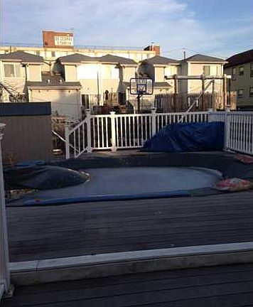 14159h -charmingly quaint home with much to offer, hardwood floors w/ detailed border,skylights,spacious,eat in kitchen w/breakfast nook set. two spacious bedrooms, finished basement w/lg 3/4 bath. entertainers dream yd, huge trex deck w/solar lighting, lg above/inground pool,basketball court,shed, driveway that parks 3 cars & much more. three zone heating.
