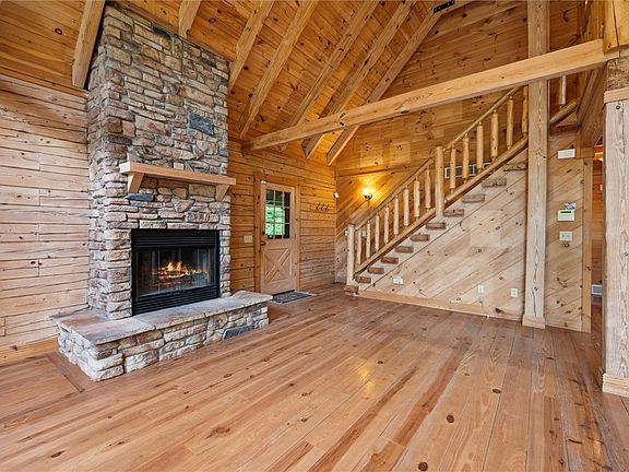 Welcome to 365 Hemlock Bend! This charming 3-bedroom, 2-bath log home, built in 2004, sits on 20 acres along the beautiful Clarion River. Located in a gated community, it offers the perfect retreat from the hustle and bustle of everyday life. Enjoy the outdoors and abundant wildlife from the expansive deck overlooking the river and tree-lined property. Whether you love fishing, canoeing, kayaking, hunting, or hiking, adventure awaits just outside your door. Unwind in your private hot tub while soaking in the peaceful sounds of nature. Inside, you'll be awed by the cathedral ceilings, open-concept living space, and a stunning stone wood-burning fireplace. The main floor features two bedrooms and a full bath, while the owner's suite occupies the upper level, complete with an ensuite and a loft with scenic views.The spacious basement offers the potential for additional living space to suit your needs. This is a property you must see to truly appreciate its natural beauty and charm!