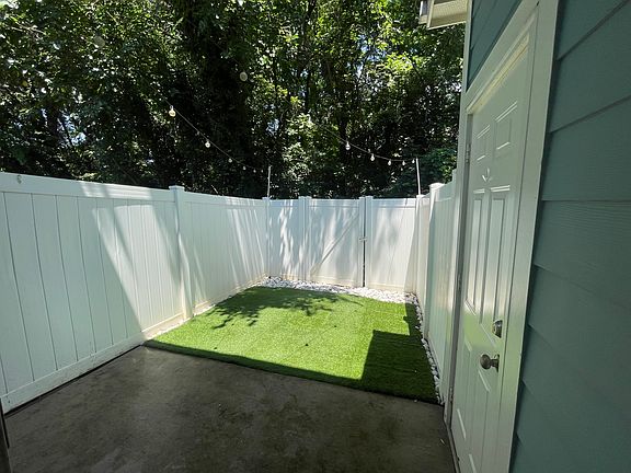 Gas burning fireplaceGoogle nest thermostatsTree line privacyQuartz bathroom countersFenced in patioMarble kitchen countertopsIn-unit washer and dryer