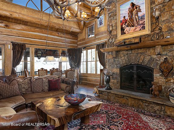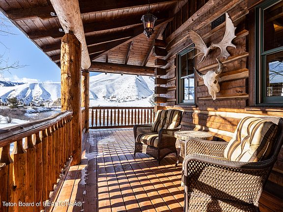 This incredible property sits on 2.13 acres bordered by the Snake River and is surrounded by National Forest with its own paved private drive. This 4 bedroom, 4.5 bath retreat offers one hundred yards of river frontage—world class fishing is just steps from the back door. Two living room spaces, plenty of bedrooms, two offices, and four indoor fireplaces make for a cozy mountain getaway for the whole family. This property is conveniently located just 15 minutes from Jackson's restaurants, stores and amenities, 5 minutes from the Hoback market and is just a mile and a half from the amenities of the Sporting Club. This property is short term rentable.