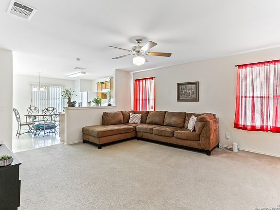 Welcome to a charming 3-bedroom, 2-bathroom home that combines comfort, convenience, and community. From the moment you arrive, you'll notice the inviting curb appeal with a shaded front yard and covered porch, perfect for enjoying quiet mornings or evening sunsets. Step inside to a bright entryway that opens into the spacious living area. The open floor plan connects the living room, dining area, and kitchen, creating a natural flow for entertaining and everyday living. The living room features large windows that bring in plenty of natural light, while the kitchen offers classic wood cabinetry, white appliances, a gas range, and a roomy dining space with direct access to the backyard-making indoor-outdoor living simple. The primary suite is a comfortable retreat with a private en-suite bath and walk-in closet. Two additional bedrooms and a full bath provide flexibility for family, guests, or a home office. Enjoy the expansive backyard with room to garden, play, or host weekend cookouts-fully fenced for privacy and ready for your personal touch. This home is located in a welcoming community just minutes from local schools, shopping, and dining. With quick access to I-35, commuting is a breeze-only a short drive to Austin and within easy reach of San Antonio. Don't miss this opportunity to own a move-in ready home in one of Kyle's most desirable neighborhoods.