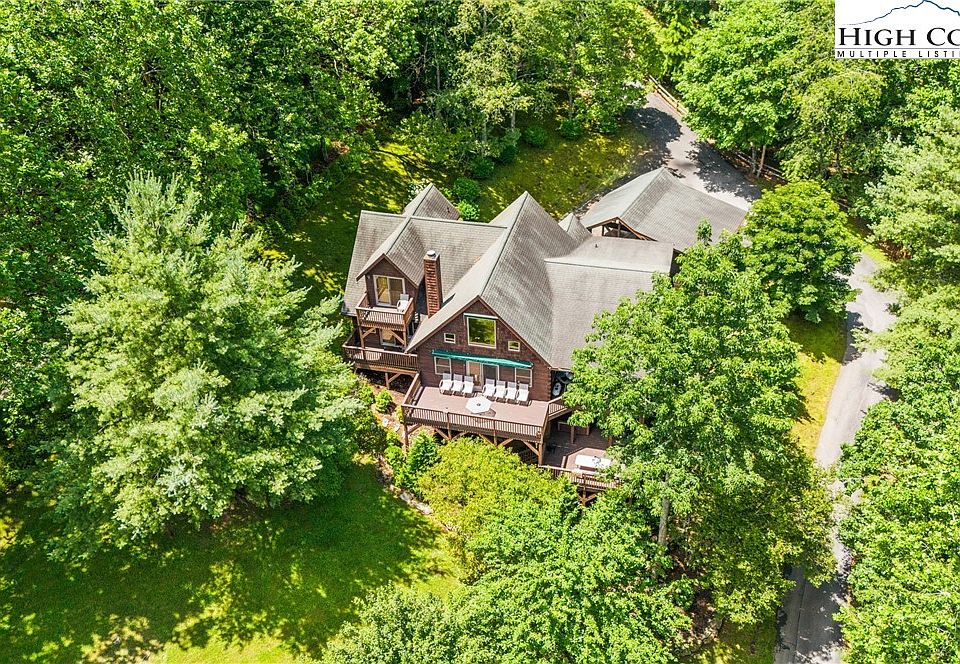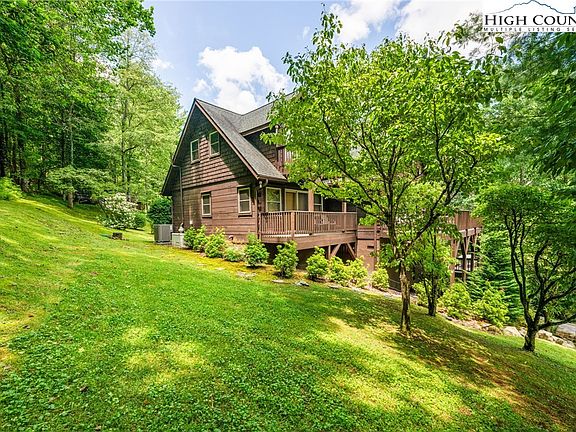 Tranquility awaits! This high-quality, well-maintained 4BR/4BA log cabin is situated in the historic Valle Crucis area. The cabin borders a land conservancy & is just a short distance to the Watauga River, and the heart of Valle Crucis. Enjoy end-of-the-road privacy and no POA. This beautifully UPDATED home boasts mountain views and expansive multiple decks (both open and covered) from which to enjoy the view. Inside, the home features black walnut floors throughout the main level and an impressive great room with vaulted ceilings, a stone fireplace with gas logs, and French doors that lead to the open deck. The open kitchen features a large central bar, granite countertops, a new LG French door refrigerator, and a newer gas range. The adjoining dining room offers easy access to the back deck, making it perfect for entertaining. The primary bedroom and two full bathrooms are conveniently located on the main level of the home, as well as a bonus room (currently being used as a home office, but could also function as a bedroom) and a spacious laundry room. Upstairs, you will find an open loft, a large bedroom with vaulted ceilings and deck access, and a full bathroom. Downstairs features the third and fourth bedrooms (with deck access), and another full bathroom. The deck off of this lower bedroom has a large hot tub and stairs leading to the yard. Outside, you will find an elegant detached 2-car carport (beautifully finished with vaulted tongue & groove ceiling, exposed beams, and a chandelier) as well as an attached workshop. Some recent upgrades include: enlarged parking area, extensive landscaping, gutters with leaf guards, and a newer heat pump and gas furnace (3-zone system). A generator will automatically come on in the event of a power outage and will power the kitchen, laundry room, great room, dining room, office, furnace, and the well pump. Home is also equipped with an ADT security system. This house would be a wonderful primary home or a great rental/secondary residence and is being offered fully furnished and ready to move in (less minor exclusions - see attached list)! It had great success with short-term rentals in the past; the current owners have not rented it.