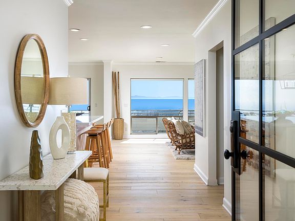 Stunning Modern Retreat with Panoramic Ocean, Island, and City Views Perched in the hills above Santa Barbara, this stunning modern 5-bedroom, 4.5-bathroom home blends luxurious design with sweeping views of the Pacific Ocean, Channel Islands, and city skyline. Walls of glass immediately draw your eyes to the breathtaking scenery, filling the home with natural light and a profound sense of peace. The bright, open-concept living room is anchored by a sleek, formal fireplace and flows effortlessly into the elegant dining area ideal for both quiet evenings and vibrant gatherings. The chef's kitchen features high-end stainless steel appliances, granite countertops, a spacious island, and easy access to a scenic patio and expansive view decks.