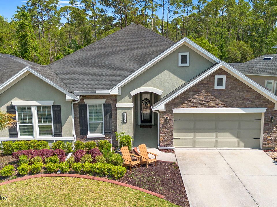 NEW CARPET installed 9/29 and FRESH PAINT! BEST PRICE per sqft for 4 bed 4 bath single family home in NOC! With the closest location to the WATER PARKS! This extraordinary home offers the Nocatee Lifestyle, in a must-see prime location in Willow Cove, mins from waterparks, shopping, dining and the beach! From the moment you step into 365 Majestic Eagle Dr. you will feel right at home. Desirable David Weekley built open concept floorplan offers, 4 beds and 3 baths on the main floor with a large bonus room, with closets and full bath upstairs, can easily be used as a 5th bedroom. Enjoy cooking and quality time in your updated kitchen with timeless white cabinets and upgraded countertops. Unwind in the spacious primary suite and stunning primary bath including soaking tub and renovated step in shower. Enjoy summer nights on the large, screened back porch overlooking the preserve and fenced back yard.