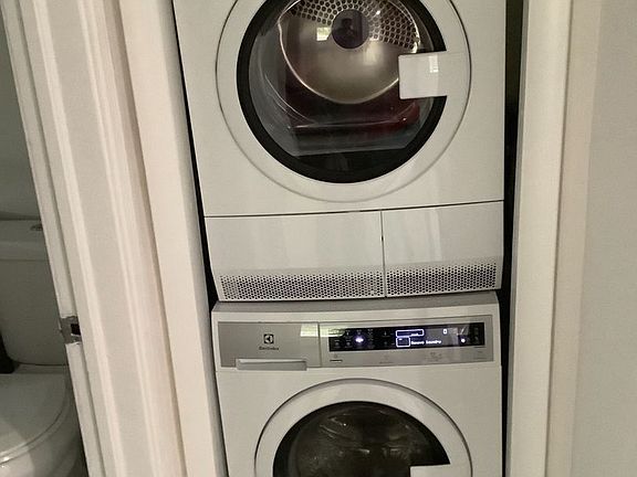 Modern livingStylish finishesStackable washer and dryerStainless steel appliances