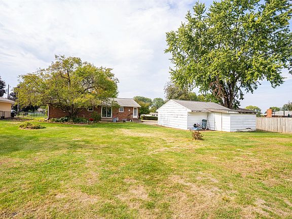 Patio spaceLarge flat backyardTwo car garageLarge picture windowLarge eat in kitchen