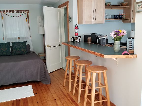 Our family moved to this location in 1993. The cottage was rented out to a sweet Puerto Rican friend in the beginning. As time went on, the cottage has been rented long-term to various folks, as well as, short-term. This space has been renovated three times. The most recent time, the new flooring was installed. Due to lack of space, there is no washer/dryer. There is a laundromat nearby.