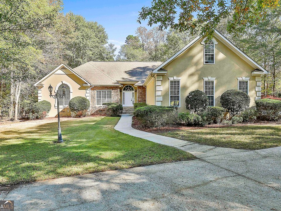 Freshly painted interior with updated quartz countertops in the kitchen and primary bath. The high bar top in the kitchen was lowered for a more modern, open look. Refinished hardwood floors, new ceiling fans, and new exterior door hardware. Carpet and screened porch tile are newly cleaned. Beautiful, sprawling ranch situated on nearly one acre in a desirable swim, tennis, and lake community. This well-maintained home offers 4 bedrooms, 3 full baths, a large bonus room, and a private office accessible through the garage-ideal for working from home or hobbies. The spacious kitchen features newer stainless-steel appliances, a large island, walk-in pantry, quartz countertops, and hardwood flooring. It opens to an oversized family room and breakfast area, perfect for entertaining or everyday living. The family room boasts vaulted ceilings and custom built-in shelving flanking a striking stone fireplace. Additional living areas include a formal dining room, a sunken living room, and elegant molding details throughout. The primary suite offers a double-tray ceiling, direct access to the screened-in porch, and a luxurious bath with dual vanities, tile flooring, and a generous walk-in closet. Two of the three secondary bedrooms feature vaulted ceilings, and all bathrooms include tile flooring. Enjoy outdoor living on the screened-in porch leading to an expansive synthetic deck overlooking a large, fenced, and private backyard-perfect for relaxing or entertaining. The circular driveway provides plenty of parking for guests. Conveniently located less than 10 minutes from Trilith Studios and the new U.S. Soccer National Training Center. Zoned for top-rated Fayette County schools. This beautiful property combines comfort, style, and location in one exceptional home!