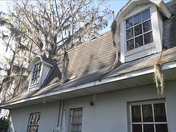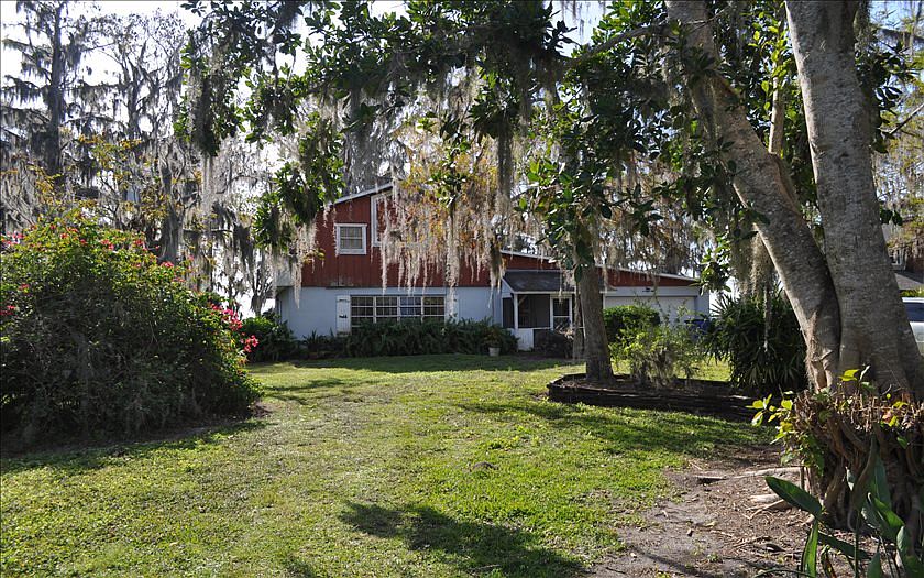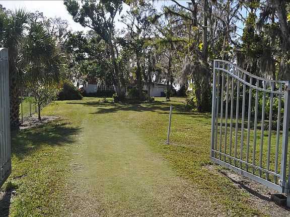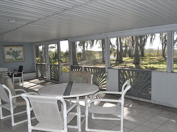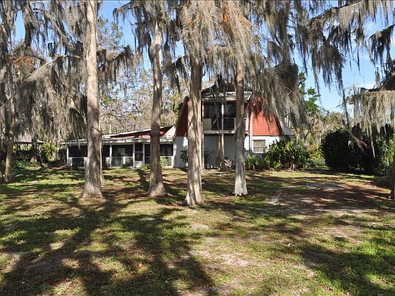 Motivated Seller. Beautiful 2-story old world charm lakefront home on Florida's 5th largest lake. Watch the incredible wildlife from the back yard and fish in the bass tournament premier lake. 2 Bedrooms downstairs and two bedroom upstairs with potential to make one large bedroom into a 5th bedroom upstairs. Master bedroom upstairs has a balcony overlooking the lake. The formal living room has 20' ceilings and a real wood burning fireplace brick faced wall, a huge beam and rich carpeted staircase to the second level bedrooms. Master has walk-in closet. Huge screened Lanai. Gated entrance. Move in ready. Sunset views. Lush landscaping. Front, back porch and family room tiled. Lots of storage.