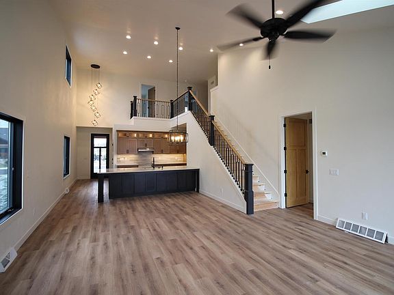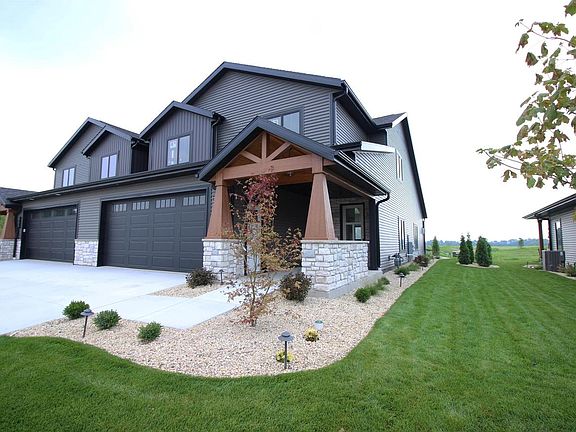 This new construction condo overlooks Ridge View Park and driving range & is located in Milton's newest residential development. As you walk through the front door you are met with 18' ceilings that showcase the open concept kitchen, dining & living room. The living room features a gas fireplace with direct access to your private patio made of stamped concrete. The primary bedroom is located on the main floor with tray ceilings, a bathroom that features a double vanity, low threshold shower entry & a walk-in closet. Also on the main level you will find your laundry room & half bath. The upstairs features two bedrooms, an additional full bath & a loft space open to below. The basement has an egress window & rough plumbing for a future bathroom. Some rooms have been virtually staged.