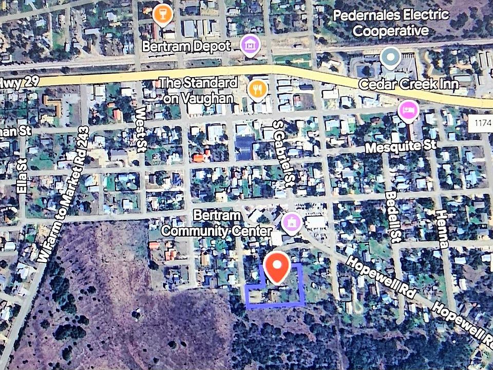 GREAT OPPORTUNITY TO OWN THIS SPRAWLING +- 1.6 ACRES IN THE CITY OF BERTRAM WITH CITY WATER AND SEWER. THE HOUSE NEEDS WORK BUT THE PROPERTY IS THE REAL BONUS HERE FOR FUTURE DEVELOPMENT POSSIBILITIES AS THE CITY OF BERTRAM CONTINUES TO RAPIDLY GROW. THIS WOULD BE A GREAT BUY FOR THE INVESTER OR DEVELOPER WHO HAS THAT KEEN EYE FOR WHAT COULD BE!