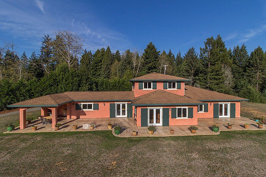 FRENCH COUNTRYSIDE style, newer home on private setting of 6.6 acres of open space bordered by native trees. Built in 2007 by current owners, approx 2600 s/f, 2-3 bedrooms and high end finishes throughout. Elegant gourmet kitchen with extensive granite counters and cabinets, Thermodor 6 burner propane stove and custom hood. Hydroponic hardwood/tile floors, numerous windows allow light and sun to flood each room year round. Oversize living room, open formal dining, French doors, grand entry with double doors, master bedroom suite with large tile bathroom, walk in shower and dual sinks. Full length custom patio included covered kitchenette and heated dining area. Triple car garage, convenient garden storage, separate, older garage, rolling lawns and serene setting. Conveniently located in popular area, warm and comfortable home, private and end of the road seclusion.