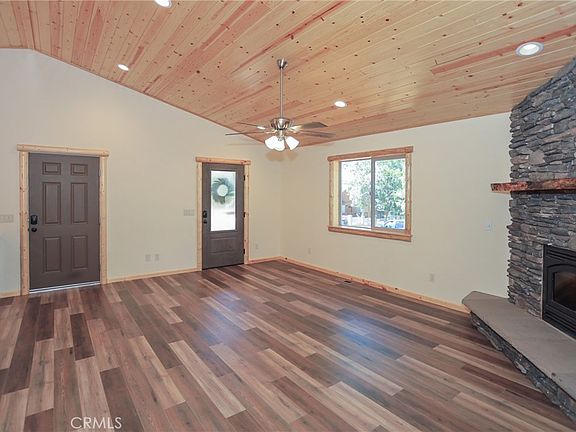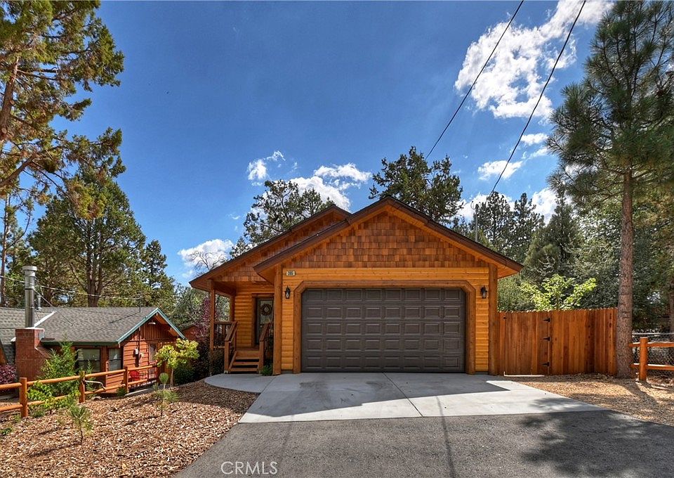 Welcome to this beautifully crafted 3-bedroom, 2-bath home nestled in the serene Big Bear Pine Wood subdivision. Blending rustic charm with contemporary features, this home offers an inviting open-concept layout perfect for both everyday living and entertaining. The spacious kitchen is a chef’s dream, featuring stainless steel appliances, custom cabinetry, and sleek granite countertops. Gather around the artisan-built redwood dining table with custom seating — perfect for cozy dinners or hosting friends and family. Both bathrooms are generously sized and include Bluetooth-enabled exhaust fans, bringing modern convenience to your daily routine. Enjoy the practicality of a 2-car attached garage, offering ample parking and storage. A 6-foot redwood fence surrounds the property, ensuring privacy and peace of mind. Outside, a thoughtfully designed mix of hardscape and landscaping creates a functional 360-degree walk-around — ideal for enjoying the fresh mountain air in every season. This home truly offers the best of Big Bear living. Don’t miss your chance to own this unique blend of mountain serenity and modern comfort!