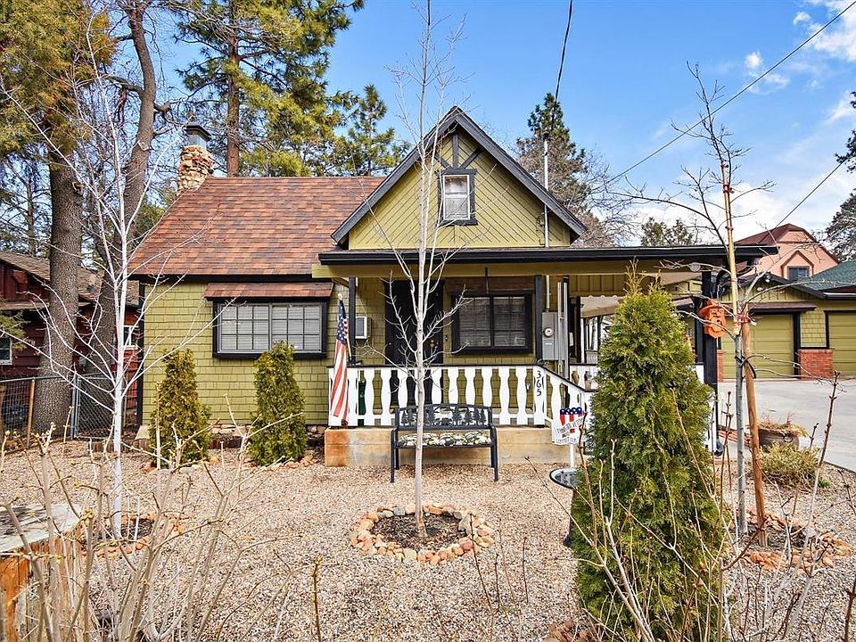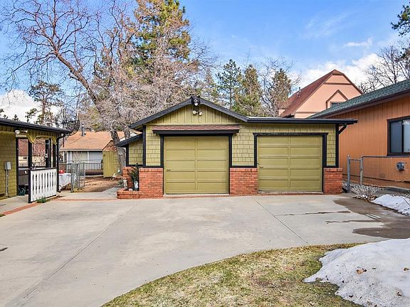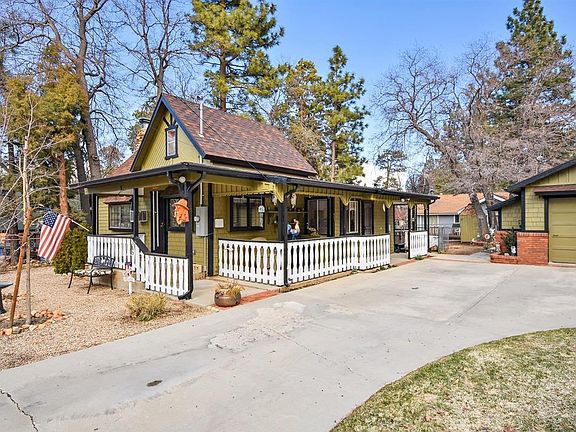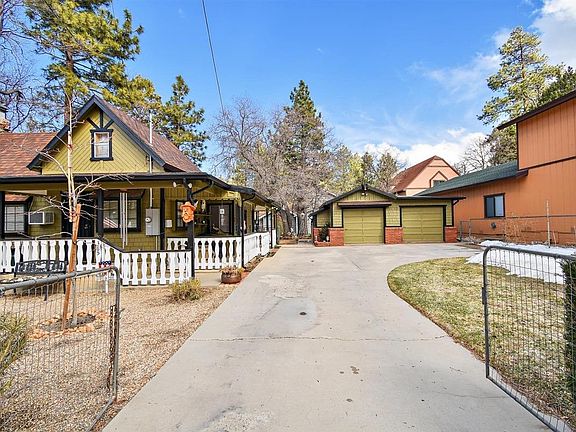 This is the cabin you have been waiting for. Fantastic condition on a fully fenced triple lot with fruit bearing trees. Concrete driveway and two car detached garage with built in storage rooms. Newer roof and paint with shingle siding. Newer deluxe model spa with 220 v wiring. Covered wrap around porch with rain gutters and downspouts. Pine, high beamed ceiling in the living room with a gas burning insert that can be converted to wood. Knotty pine walls in the living room. New blinds. New tile in kitchen and bathrooms. New toilets, tub and shower in bathrooms as well as new vanities. Laundry room indoors. Master suite has two double closets. New hot water heater. Kitchen is roomy and clean with access to the porch. Second bedroom is an unpermitted, super clean loft with a new ladder for access, great for sleeping or extra storage, has two windows. Alarm system and security doors. The whole house is very well kept and move in ready. A short drive to the lake, village and skiing.