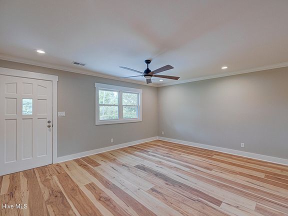 Situated on nearly half an acre, in sought after Green Meadows, this professionally renovated four-bedroom, 2 bath home is just minutes from Wrightsville Beach, Mayfaire Town Center, and all the shopping, dining, and entertainment the ''bubble'' has to offer! The kitchen features new cabinetry with soft close drawers and doors, new hardware, quartz countertops, new fixtures, plumbing, and appliances. The dining area is perfect for entertaining with room for additional seating at the island. The kitchen flows seamlessly into the spacious living room complete with crown molding for a refined and finished look. Both bathrooms were completely updated with new tile, cabinetry, fixtures and plumbing. New flooring runs throughout the entire home, which was also freshly painted a neutral color that will complement any design palate. A new Rheem HVAC system was installed, including new duct work which was moved from the crawl space to the attic. The crawl space has new insulation and a vaper barrier. The garage has epoxy flooring and a new opener. The outside of the home has also been updated. New exterior paint, sod, lush landscaping, mulch, along with a wood deck, perfect for grilling out. There is no HOA so you can park your boat at home! This home is truly move in ready!