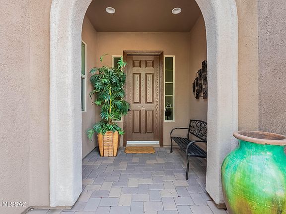 STUNNING ORO VALLEY home. Welcome to your dream home nestled in a private gated community in the heart of Oro Valley. This well-designed home offers breathtaking panoramic views of the Catalinas from both the Patio & Owner's suite. 3 Bedrooms/2.5 baths/2.5 car garage. Spacious split floorplan w/luxurious owner's suite 2 huge closets, plantation shutters, spa like bath w/soaking tub & separate shower. 2 additional bedrooms with Jack&Jill bath. Elegant upgrades: butler's pantry with wine Frig, wet bar, whole-house water softener, custom garage cabs, epoxied floor & brick pavers driveway. Professionally designed yard w/covered patio, travertine pavers, gas fire pit, low maintenance plants & artificial turf. Prime location: access to highly ranked Basis School, OV Comm. Ctr Pickleball, tennis, yoga fitness classes & gym. OV Country Club is nearby offering golf, tennis & social events. Ritz Carlton Spa for luxury & relaxation. NW Medical, Safeway & other conveniences are close by. Enjoy Anytime Fitness & scenic walking/biking paths. This home combines comfort, convenience, & luxury - perfect for enjoying the best of Southern Arizona