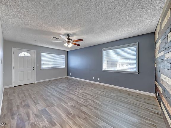 Back On The Market With A Brand New AC Unit! Unit was installed January 2026! This Updated, Single Story, Four Bedroom, Two Bath Home Is Move In Ready! Vinyl Plank And Tile Floors Throughout. Ceiling Fans In All The Bedrooms And Living Room. Wood Accent Wall In The Living Room. Barn Door For The Hallway Leading To The Bedrooms. Desert Landscaping In Front. Large Backyard - ready for your design! The Play/swing Set and Trampoline Will Stay Or The Seller Will Remove Upon Request. Mountain and Valley Views Are Beautiful. You're Going To Love Doing The Dishes In This Home (There Is A View Of The Strip). Easy Access To The 215 And Downtown Henderson.