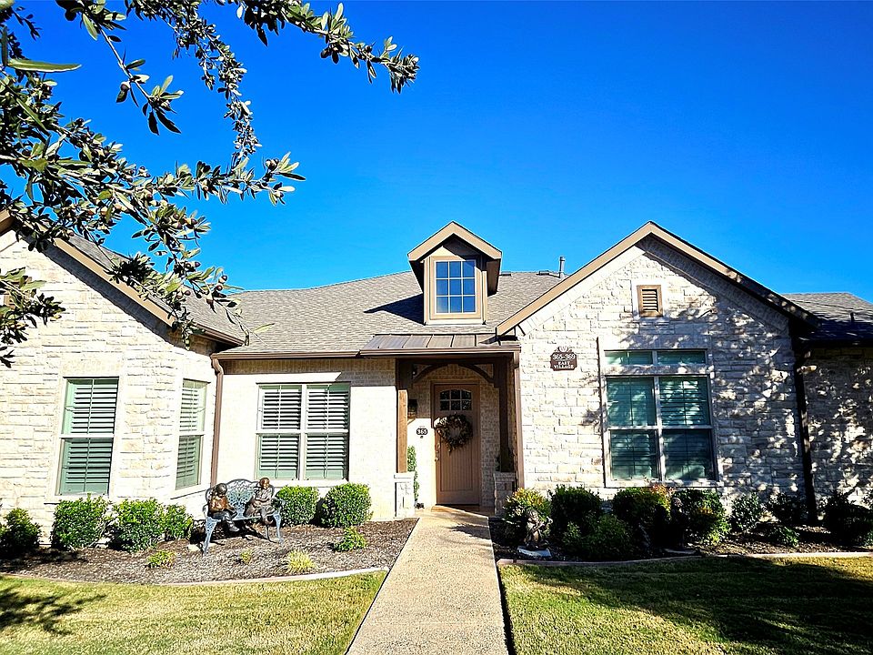 Luxury senior living single story villa located in east Village of Watermere at Southlake. This is an open floorplan with lots of windows and tall ceilings. The doors are all 8' and solid core. This villa has an elegant trim package, custom plantation shutters, and engineered wood floors thru out all the living areas. Both bedrooms have private ensuite baths and there is 1 half bath for guest off the kitchen. The study has built-in cabinetry, ceiling fan and french doors for privacy. The living area has 10' ceilings, cedar beams canx lights and a ceiling fan. There is a gas log fireplace with an electric starter. This is the smallest most open floorplan in Watermere. There is a 2 car attached oversized garage with cedar garage doors. The laundry room has built in cabinets. Residents enjoy a low-maintenance lifestyle with club membership included in the price. Membership provides access to resort-style amenities such as concierge services, security, golf, fitness center, water aerobics, scheduled activities and games! Dining in the casual cafe or large formal dining room. Experience the perfect blend of luxury, convenience and community living just minutes away from shopping, dining and more.