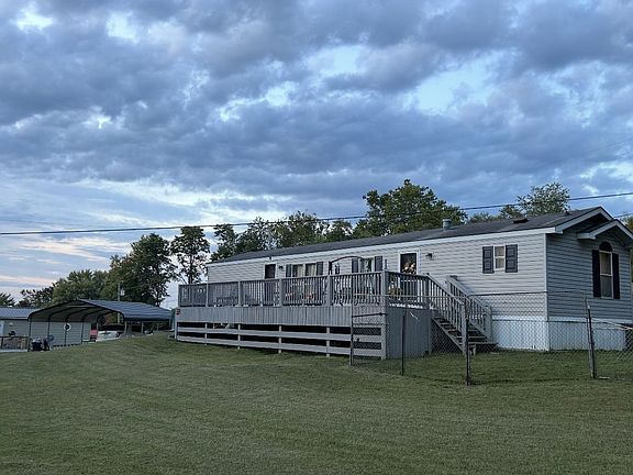 Beginner home? Retirement home? Or Investment property?. This property offers endless possibilities with its versatile layout and dual front entrances, making it adaptable to a variety of needs. Featuring 2 bedrooms and 2 full baths, this well-maintained mobile home provides over 900 square feet of thoughtfully updated living space. Recent upgrades include new flooring throughout, fresh finishes, and modern updates that enhance both comfort and functionality. Step outside and enjoy the expansive front deck - perfect for entertaining guests, enjoying quiet evenings, or taking in the peaceful country surroundings. Situated on over 2 acres, this property offers plenty of room for gardening, outdoor hobbies, or simply relaxing in your own open space. The large steel carport provides excellent protection for vehicles, and a small outbuilding adds extra storage or workshop potential. Conveniently located just minutes from Rio Grande College and ideally positioned between Gallipolis and Jackson, this property combines country living with easy access to town amenities. A wonderful opportunity for those seeking comfort, space and flexibility! Note: Agent Owned