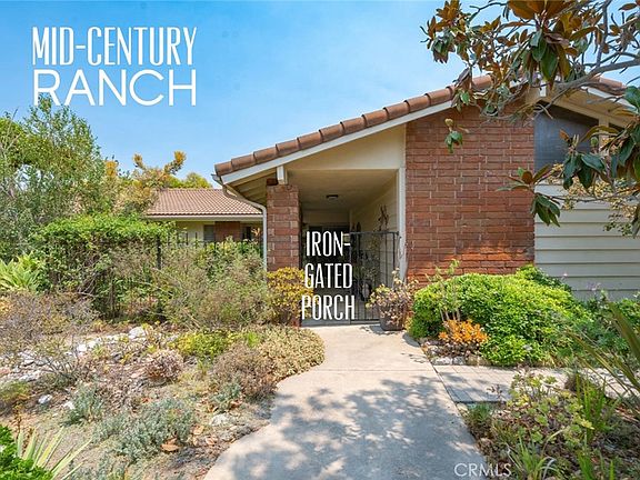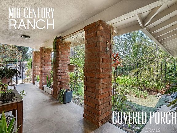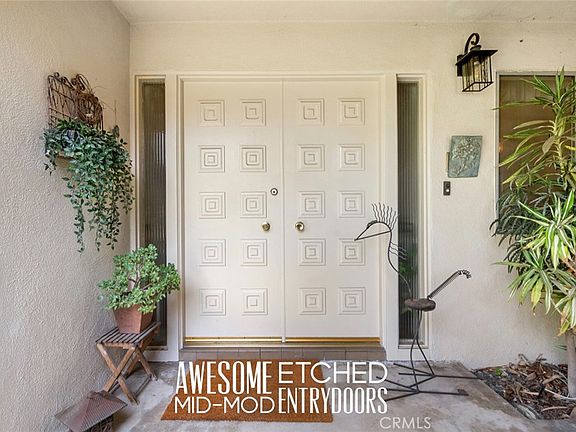 The home is a fabulous mid-century modern timecapsule with a very well-designed floorplan, accentuating what mid-century architecture aimed for (to create an open flow and integration with nature). The skylight in the breezeway gives sunshine for landscape to thrive, defining the home’s bohemian style as you leave your car to the carved entry doors. Upon entry, you are greeted with classic mid-century slat wall dividers. Gather in the large, light and bright living room. Notice the walls of glass allowing the lush landscape to be your artwork. A classic Mid-Mod feature is the atrium wall in the hall bath. Each room boasts generous square footage and closet storage. The primary bedroom enjoys it’s own covered patio and en-suite bathroom w/ two separate sink vanities, a makeup vanity, and a tub/shower joined by a private toilet room…it’s a classic Hollywood bathroom. The kitchen has a breakfast bar, is open to the family room, enjoys direct access to a large dining room and to a utility/laundry room. The entire property has NO STEPS, except a few at the mailbox.