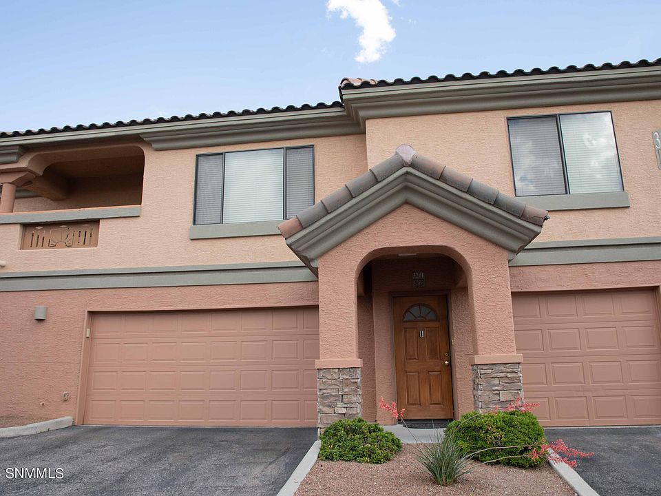 Don't miss out on this beautiful 2 Bedroom/2 Bath condo in the most sought-after gated community in Las Cruces. It is very well maintained with recently installed vinyl flooring and carpet throughout, new toilets, fresh coat of interior paint, and new faucets. You may enter your home through the oversized 1 car garage, which also has plenty of storage space. The carpeted stairs lead you right into your lovely 1225 sqft home. Open concept living, dining, and kitchen. Master bathroom has both a shower stall and a relaxing tub. All appliances will convey including the washer & dryer. This gated community has many amenities to offer including BBQ areas, gym, indoor/outdoor pools, hot tubs, and a steam room. The HOA will also take care of the building's exterior maintenance, roof, and landscaping, so you can sit back and relax.