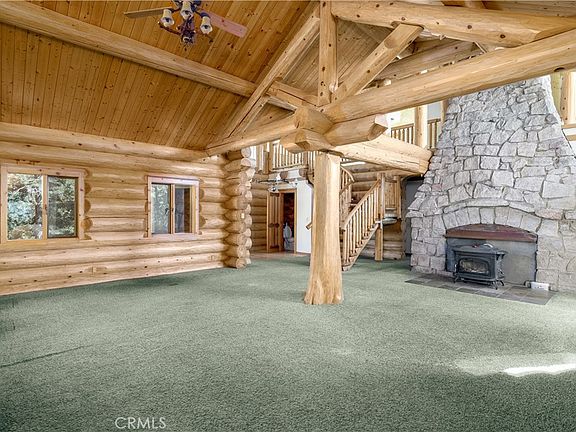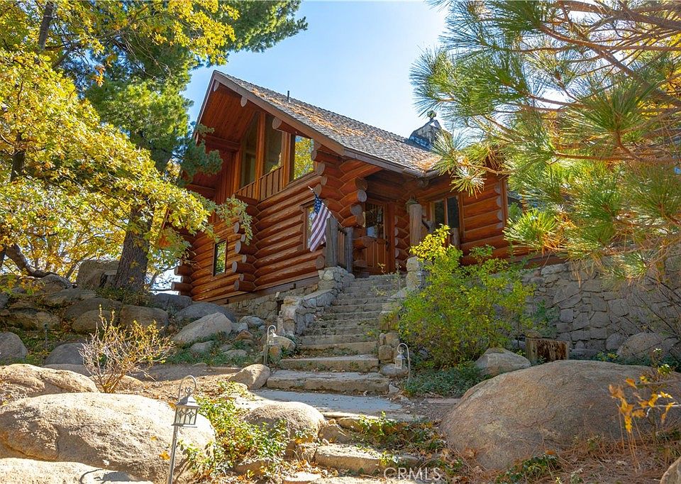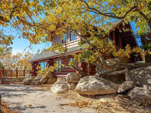 BACK ON MARKET!!! OWN A PIECE OF HISTORY! Originally owned by the film star Reginald Denny purchased in 1926. An actor in over 130 films and known as the “father” of the drone!! This custom built LOG HOME sits on over 5 acres with 180 degree views. Around the property you will find several out buildings that include 6 car garage, 3 car carriage house with possible apartment/granny flat upstairs, well house, and 2 storage sheds. BRING YOUR HORSES because a corral is also located on the property. The Main House features 2 beds, 2.5 bath, LOFT and BASEMENT that could be converted to 2 additional bedrooms! As you enter the home you are greeted by the stunning warm wood throughout. Cathedral ceilings made of massive wood beams with lots of natural light. The open living room is anchored by the original 1927 stone fireplace. The spacious kitchen boasts granite counters, stainless steel appliances, dining area with amazing views and a walk-in pantry/laundry room. Down the hallway is the master bedroom and bath with a walk-in shower. Opposite of the master is the second bedroom with built-in shelves. Just off the entry is the main floor powder room. Upstairs is a loft area with breathtaking picture windows and another full bathroom. This space could be converted to an additional bedroom. The basement includes a 3/4 bath with unfinished shower. Perfect space for an older child or relative. The expansive deck off the living room is original to 1927 along with the the stone entryway stairs leading to the front door and the stone walls around the base of the cabin. Store you car collection in the 6 car garage that features 220 volt along with heat and water. Across the driveway is the carriage house that could be used to store 3 more vehicles or used as a barn for animals. Upstairs is another living space not yet finished, that could be converted to an in-law suite or apartment. FEEL LIKE YOU ARE ON TOP OF THE WORLD! Located on a private GATED road, this property is one of a kind! 2 parcels are included in this sale. A 2-acre parcel sits below the home, perfect for a relative to build another house. See photos for more on the HISTORY of this amazing property.