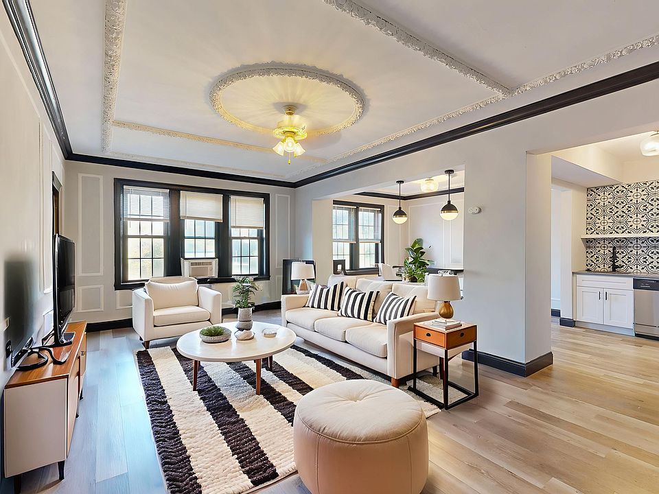 Updated kitchenHardwood floorsCrown moldingVintage dressing-room spacesOrnate ceilings