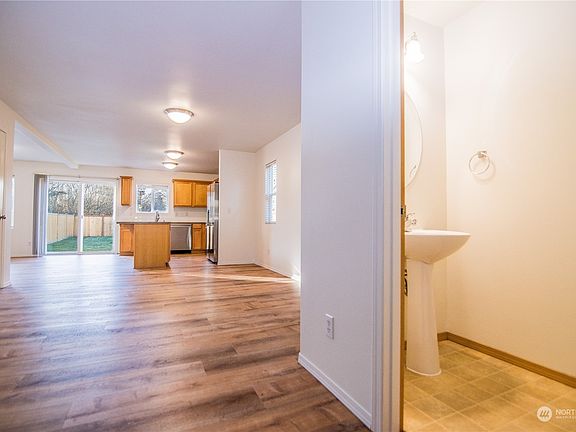 This gorgeous home is ready to enjoy today! Freshly painted inside and out. All new appliances included. New floor coverings - LVP on the main floor - new carpeting on stairs and upper floor. This centrally located home is between Tacoma and Federal Way with easy access to I-5. Quiet dead-end street provides a private garage and additional off-street parking. Large, private, fully fenced, and level backyard with a green belt behind. Two large bedrooms upstairs, each with their own full bath. Convenient upstairs laundry room. (New washer and dryer) Open kitchen and large living and dining room area on the main floor. Mountain view from the front porch! Affordable HOA dues at only $42/month.