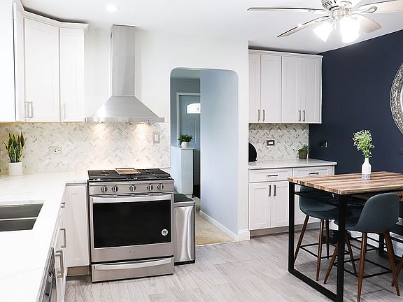 Updated brick raised ranch home with 3 bedrooms upstairs, 2 bedrooms downstairs. Master suite with walk in custom closet and fully updated bath. New beautifully updated eat-in kitchen with built in pantry, stainless steel appliances, quartz counter tops, porcelain tile, added lighting, usb plugs and new fan. Formal eat-in dinning with a large living room. Two good sized bedrooms with larger closets and bathroom located on main floor. Basement features all new porcelain tiling throughout along with two bedrooms, a laundry room, and plenty of added lighting. The first bedroom is very large and can be used as an office. The second contains a full bathroom, large cedar closet, and hideaway closet. There is a detached 2.5 car brick garage. The backyard is surrounded by a newly installed white vinyl privacy fence. Will offer buyers agent a fee. Aluminum fascia, soffits, gutters. Maintenance free vinyl windows installed in 2016. AC unit 2012. Roof 2010. Living Room: 20x14 Dining Room: 13x9 Kitchen: 13x12 Bedroom 1: 11x10 bedroom 2: 12x14 bedroom 3: 12x14 Basement bedroom 1: 17x13. basement bedroom 2: 13x12 w/ cedar lined closet. Basement finished with porcelain floor, drywall and insulated.