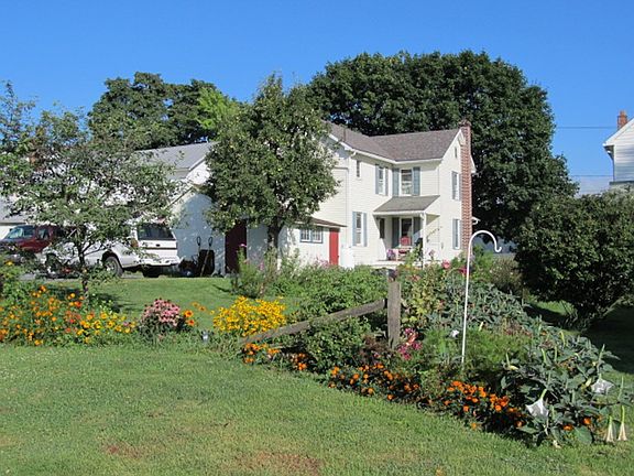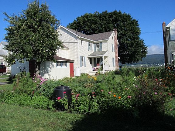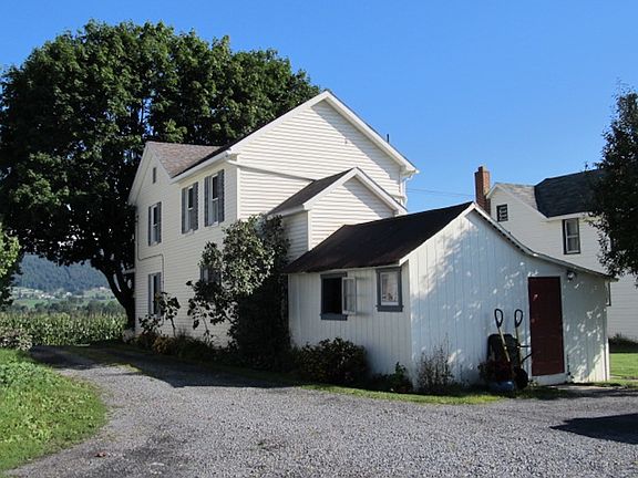 This two-story single family home sits on top of a hill along 655 just west of downtown Belleville. The upstairs has 3 bedrooms and 1 bathroom. Downstairs there is an open kitchen/dining area, and 2 family / living rooms. The kitchen was redone in 2004 and has granite countertops, . There is an attached shed with a laundry room connecting the house and shed. A new roof and propane furnace were installed in 2013. Lot is .13 acres with a pear tree, garden and parking for 2 - 3 vehicles behind the house. The house boasts a front porch that looks over the valley and Kish creek.